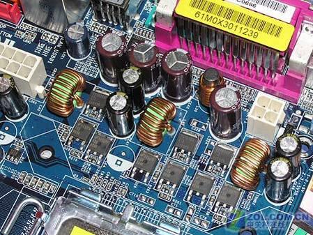 华擎775XFire-eSATA2主板的供电模块采用三相供电回路设计,搭配大量高品质KZG滤波电容。