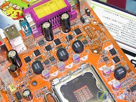 梅捷SY-I5P4L主板的供电模块采用四相供电回路设计,搭配封闭式电感和大量高品质固体聚合物电容。