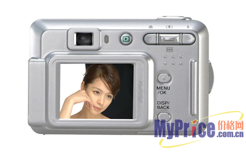 富士A500背面配有1.8英寸液晶显示屏,分辨率仅有7.7万像素。在电影拍摄功能上,它最高能达到320×240分辨率。A500尺寸为93×60×28mm,重量则为126g,随机配有2节5号碱性电池,大家可以另选镍氢电池。