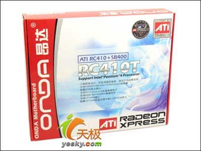 昂达RC410T的外包装盒,让人一眼便能看出是采用ATi芯片组的产品。盒子正面标注了产品的一些特性,用户便可以很清楚的了解产品的相关信息。