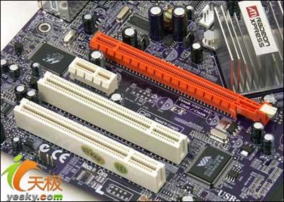 主板还预留了一条独立的PCI-E显卡插槽和两条传统的PCI插槽,完全可以满足用户日后升级所需。主板仅采用SB400南桥,提供了8个USB2.0高速接口,支持最高480MB/S的传输速度,UltraDMA133支持以及SATA 1.5G支持,支持两组S-ATA磁盘和IDE接口。