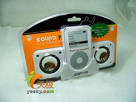 Sound Pod SPK-611是一款针对iPod和索爱W800c这类音乐手机而设计的便携式音箱。Sound Pod的外壳采用与iPod相似的乳白色(也有其他颜色),搭配起来非常和谐,其中央设有一个空位,是专门为iPod或手机而留的,使用者可以很方便地将机器镶嵌在里面。音箱的两个扬声器单元采用了铝质金属材料,尺寸有2英寸。左右两边的音箱是可以根据需要来调整角度的,能折叠成任意角度,甚至收拢起来,有点“变形金刚”的味道。音箱只要4节AAA电池就能够保证它使用10个小时,此外拥有笔记本的用户还可以通过USB接口为它供电。