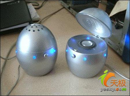 M3201的音箱产品其实是博声公司专门针对办公族用户量身定做的产品。这款音箱造型乖巧可爱而紧凑,银白色小巧玲珑的“蛋身”令人爱不释手。当播放音乐时,蛋壳腰部还有蓝幽幽的光。功放(也是线控)采用银色外壳,呈椭圆状,尾部带有方形凸起,有各类接口。M3201声音细腻流畅,清脆自然,声音效果也烘托了气氛,有效营造了比实际上大了许多的空间感。