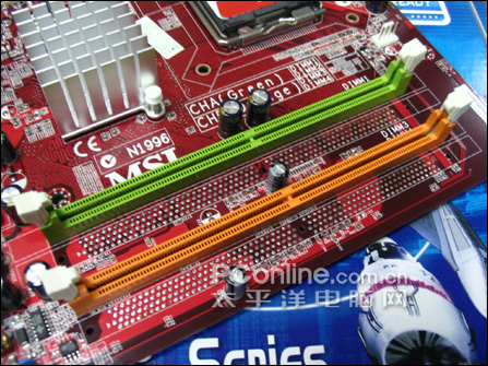 由于945PL芯片组只集成了一组双通道内存控制器,所以主板只提供了2条DIMM插槽,支持双通道。