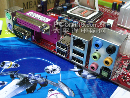 微星这款主板采用的是支持八声道的Realtek ALC850声道音频解码器,支持八声道输出,主板上还集成了一颗Intel RTL8110SB芯片,支持千兆网络功能。