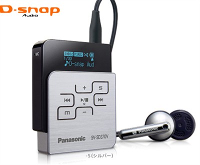 SV-SD570V和SV-SD510是另外两款造型相同的MP3,其中SV-SD570V的功能与前面的SV-SD370V基本相同,同样在充电电池与干电池并用时能提供115小时。不同的是松下为这两款MP3设计了特殊的项链式耳机,佩戴非常美观,特别适合年轻时尚的女孩子。