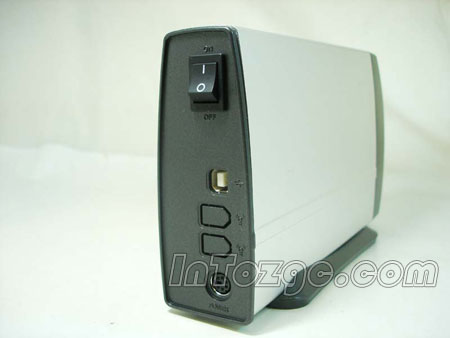 硬盘盒背面配备了开关,和USB2.0接口,USB2.0的传输速率完全能够满足用户的需要。