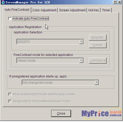 L568在显示控制方面的另外一个特点是Auto Fine Contrast。用户可以通过Screen Manager Pro为不同的应用程序指定不同的显示模式,对于经常在图像处理软件和其他软件之间切换使用的摄影粉丝来讲,这无疑也是一个很具实用性的功能。