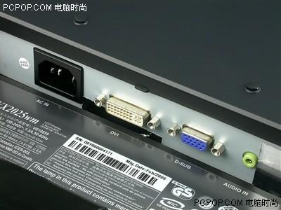 宽屏液晶的机身厚度我们不敢恭维,而VX2025wm巧妙地利用了面板的厚度,在屏幕底部集成了多媒体扬声器,成为第一款提供多媒体功能的“超凡派”液晶显示器。