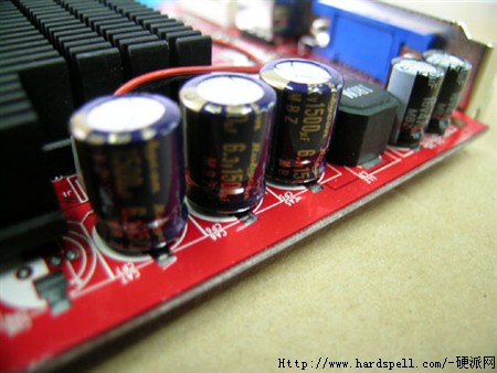 显卡的供电系统做得也异常的豪华,采用的全部都是日系的红宝石电容,在使用寿命和稳定性方面均优于其他杂牌的电容,使用高品质的电容同时也杜绝了电容爆浆事故的发生。全封闭式的电感有效地屏蔽了电磁波的辐射,显卡也会更加稳定地运行。显卡的采用大的铝制散热片,被切割成许多小块,大大增加了散热片的横切面,散热器上所配备的是低速的风扇,大散热片+低速风扇,不但散热效能高,而且噪音非常地小。