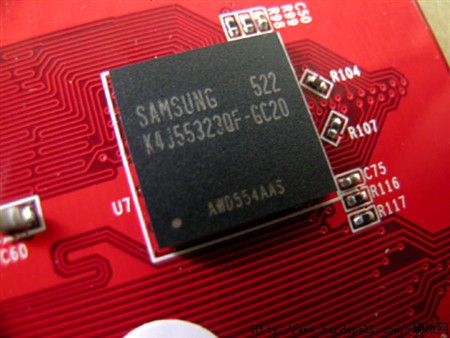 显卡采用了在超频方面有口皆碑的三星显存,DDR3 -2.0ns,四颗8*32的显存组成128MB/128bit的显存系统。核心频率和显存频率分别为600/1000MHz。比公版的X1300PRO的显存频率高出200MHz。DIY玩家可以记住显存编号K4J553230F-GC20,这也许会对你们挑选显卡有帮助的哦,因为这一批的显存超频能力也异常地出色,显卡显存频率都能超到1200MHz以上,据说这批显存原来是1.4ns的,因某种原因而被打磨成-2.0ns的显存,所有这批显卡才有这么优秀的超频能力。