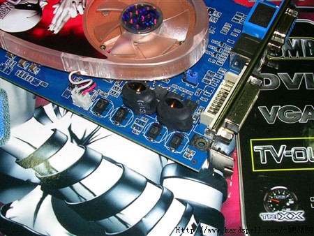 显卡没有采用显存核心分离的供电系统,而是将两者设计在一起,供电系统明显没有之前X800GTO白金版的豪华,但是整齐的两相供电系统依然能够看出蓝宝大厂的一丝不苟。