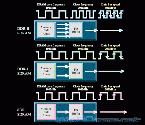 作为DDR内存新一代技术革新的产物,DDR2内存具有更高速,更大带宽,更低电耗以及更好的散热性能等特点。它是DDR SDRAM 的换代产品,在基本架构方面和DDR SDRAM类似,最大变化在于引进了4bit Prefetch(数据预取架构)来改善内存运行频率。