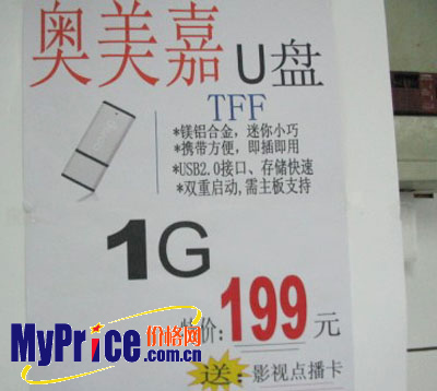 就在小编感叹世界变化之快的时候,2006年的愚人节到了,这几天正是小编上大学的妹妹的生日,小编准备送给小妹一款便宜的优盘。由于长期使用移动硬盘小编已经对优盘没有啥概念了,于是小编来到了电子商城向老板攀谈起来,小编问老板现在一个64MB和128MB的优盘多少钱?只看老板用非常鄙视的眼光看着小编,什么年代了现在64MB的优盘都停产了,大家都用512MB甚至更大的优盘了!不是吧,那得多少钱呀?怎么着也得500块吧?500块那是黑你,149块你拿走...小编无语,心想咋这么便宜呀!小编壮着胆子又问了老板一句,那1GB的多少钱?给两百块吧!晕了,多了一倍的存储空间只贵了50块,老板今天是愚人节您没忽悠我吧?老板又鄙视了一下小编,我们是诚信经销商,谁有空忽悠你?小编决定看货,货没问题,拿着走路,哈哈,对了啥牌子呀?奥美嘉的!不错呀,还是个名牌产品,今天我中彩票了!