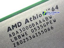 这颗Athlon 64 3000+的产品编号为:ADA3000DAA4BW LBBWE 0535GPEW。从中我们可以了解到,“ADA3000”代表的就是Athlon 64 3000+处理器,其后的“D”代表处理器使用了Socket939接口;“AA”分别代表处理器的默认工作电压以及工作温度为1.4V,65°;“4”代表 512KB二级缓存;但其后的“BW”表明该Athlon 64 3000+采用E6(Venice)核心。“0535”代表产品生产日期为2005年第35周。和绝大部分AMD处理器一样,这款产品的封装地同样为马来西亚(MALAYSIA)。