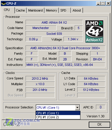 【图】Athlon 64 X2 3800+ CPU-Z信息