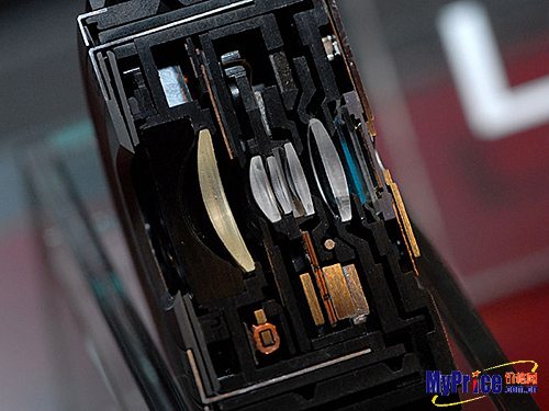 松下FX01最大的特色是在缩小了机身体积的同时增加了28mm广角镜头,其中镜头中有一枚称为EA镜片的新非球面镜头,这是一枚超高屈光率非球面玻璃研磨镜片,采用屈光率超过2.0的超高屈光率玻璃(K-PSFn2)制造。其中EA是Extra High Refractive Index Aspherical的缩写。另外再加上另外3枚非球面镜片,从而实现了只用6组7枚镜片的超小体积就达到了相当于35mm相机28mm~102mm的广角变焦镜头。