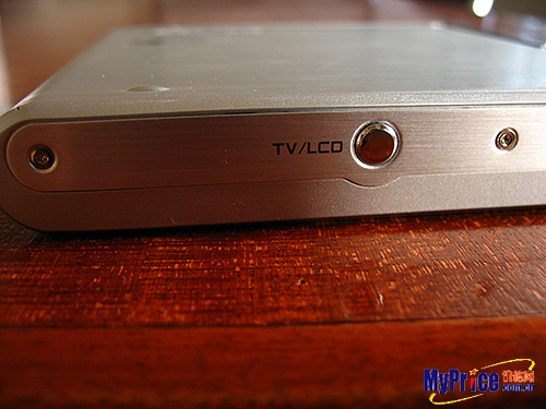 播放器的上面还提供了一个TV/LCD切换接口,这个键有两个功能,一个是在外接电视输入信号的时候可以让爱可视AV700当作电视来使用。当AV700当作播放器的时候,通过AV OUT外接显示器的时候,这个键也起到了切换的功能。