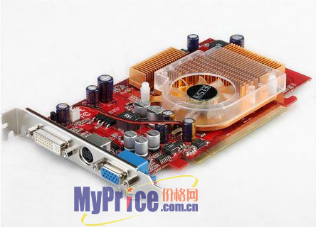 接口方面,这款显卡采用了时下主流的接口配备, DVI+TV-out、VGA一个都不少,附件中除了提供应用说明、保修卡以及驱动光盘外,还赠送一个DVI/VGA视频转接头和TV-OUT视频连线。