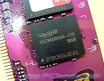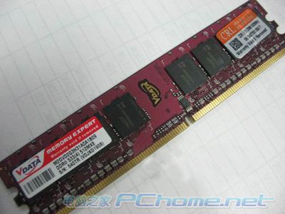 威刚(V-DATA)“万紫千红”DDR2 533采用比较暗的紫红色6层PCB板,使用mBGA封装的DDR 2显存颗粒,采用8×64M规格,单面颗粒。其标准规格为240针脚、1.8伏特工作电压及512M容量,采用最先进的0.10微米制程、FBGA封装的DDR2颗粒,成功减少IC颗粒与电路板的球面接触点,并有效降低高频工作温度与资料杂讯。