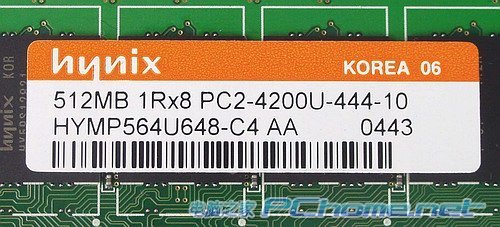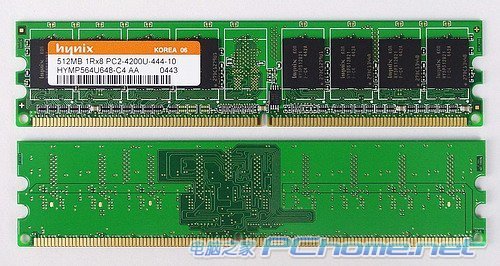 内存芯片编号为HY5PS12821 F-C4,512Mbit规格,64Mx8组织方式,整个模组的位宽是64bit。