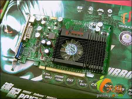 双敏PCX7628GS TURBO和其它公板7600GS不同的是核心频率已经达到了7600GT公板的标准频率560MHz。而且产品的低通滤波电路的用料非常充足,可以提供非常出色的2D显示效果。鉴于90纳米的制作工艺,此款显卡的散热系统采用了小滚珠风扇搭配大面积散热片的设计,这样既可以保证产品的稳定运行,又可以给用户一个安静的使用环境。在显存方面,双敏PCX7628GS TURBO使用了现代的DDR2 2.5ns显存颗粒,组成了256MB/128bit的显存规格,显存默认频率为800MHz。接口方面,双敏PCX7628GS TURBO提供了标准的DVI+TV-OUT输出,基本可以满足市场中所有的显示设备,并且可以对最高分辨率1080P的HDTV进行硬件加速,稳定播放任何格式的HDTV,还可以通过附送的色差线直接连接到电视上去观看1080P的HDTV,非常方便。