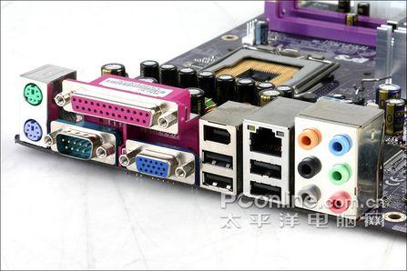 精英 945G-M3 的背板I/O接口方面相当齐全,为用户提供了两个PS/2接口,6个音频输入输出和四组USB 2.0接口,百兆网络接口,VIA IEEE1394接口。