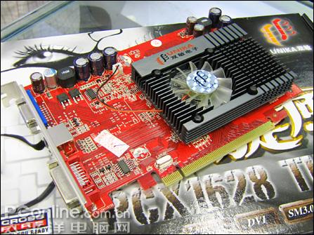 双敏火旋风PCX1628TURBO,具备256M显存,售价799元,是目前采用RV530最便宜的显卡产品。运行在575Mhz/1000Mhz的RadeonX1600Pro HM虽然在3Dmark05、3Dmark06 SM3.0/HDR、Half life2和F.E.A.R测试领先于7600GS,但是整体效能仍然逊色于7600GS。公版7600GS GDDR2频率仅仅为400/800,仍然有很多潜力提升性能,看来X1600系列要尽快体现价格优势。这款双敏火旋风PCX1628TURBO火速的将价格杀到799元、颇为震撼。