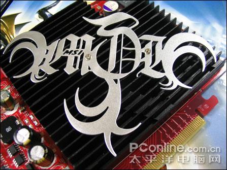 微星7600GS散热器亦沿用和公板相同的被动式散热片,并在散热器加上了酷似凤凰的MSI艺术字标志,十分美观。据NVIDIA的白皮书表示,Geforce 7600GS是为了针对MCE用户对静音的需求而设计,因此Geforce 7600GS核心电压亦由GT版本的1.3V下降至1.1V,令最高功耗下降至24W,只需采用被动式散热便可满足需要,但大家不要少看这个毫不起眼的散热片,反转它你会发现核心接触点为铜质散热片,并采用一支导热管把核心的热量平衡传致整个散热器上。显存采用上8颗Hynix -2.5 16M X 16 GDD2颗粒,容量为256M,带宽为128bit。默认频率为800MHz。