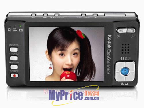 从去年柯达推出V系列卡片机后,柯达DC以出色的外观设计和优异的成像质量而受到众多消费者的喜爱。这款刚上市的柯达V603是热销相机V530的前作,它也是一款超小的卡片机,机身大小为92×50×21.6mm,重120g。有黑色和银色供消费者选择。
