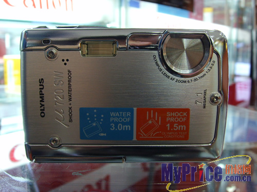 三防能力是μ-720SW的主要卖点,抗震方面,μ-720SW可以承受最高5英尺的自由落体运动,这是基于其外部机身采用了坚固的材料,内部则采用了撞击吸收技术,可有效期到缓冲作用。而防水方面,μ-720SW可承受最深10英尺水压力,配合2.5英寸LCD、Bright明亮技术和4种水下场景拍摄模式,可保证水下拍摄的画面品质,另外,采用专用PT-033防水外壳,可在130英尺深水下工作。