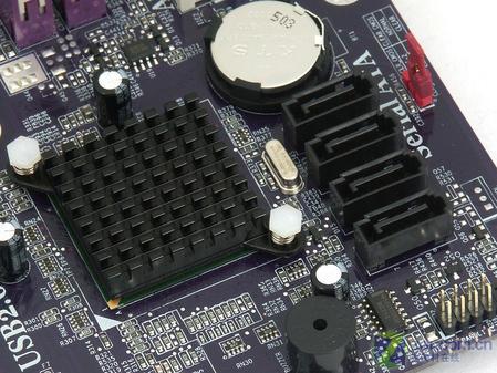 精英RC410L/800M主板采用SB450南桥芯片设计,提供4个SATA接口,支持多种RAID模式。