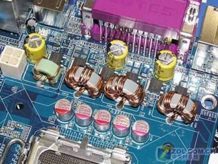 双敏URC410NS主板供电模块采用三相供电回路设计,搭配大量高品质富士通滤波电容。
