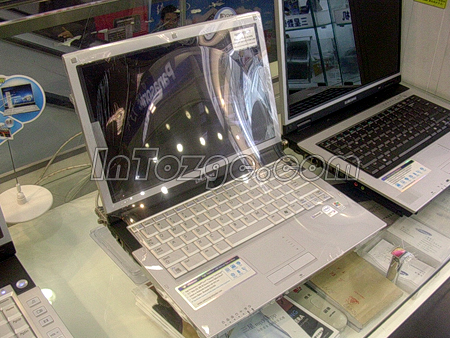 这款本本具体型号是Q35-C004,目前媒体报价为13988元。采用Intel Core T1300(1.66GHz),Intel 945GM芯片组,集成GMA950显卡,512MB DDR2内存,60GB 5400转SATA硬盘,COMBO光驱,采用了12.1寸WXGA镜面液晶宽屏。网络方面有百兆网卡,802.11a/b/g无线网卡以及蓝牙2.0。预装正版Windows XP SP2家庭版。还有一款高配版Q35-C003采用T2300(1.66GHz),80GB硬盘,DVD刻录机,但价钱就要比Q35-C004贵上1千元。