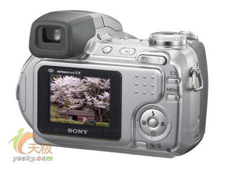 为了降低成本,H2背后的LCD仅为2.0英寸大小,而显示精度也只达到了8.5万像素,虽然显示效果不容乐观,但是鉴于H2较为低廉的售价还是值得的。新的H2与H1相比的另一改进就是感光度的提升,它的感光度范围是ISO80-1000,而快门速度为30-1/2000秒。在存储和供电上,H2采用索尼一贯坚持的MS Duo/MS PRO Duo记忆棒,而电力则由2节AA型电池提供。该机体积比FZ7略大,三围达到了113.2x83.0x94mm,而重量则为389g。