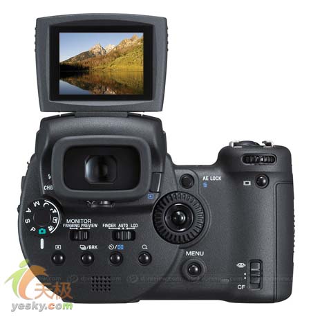 该机搭载的真实影像处理引擎赋予了R1比拼单反的速度和巡航能力,其启动时间为0.68秒、快门延迟为0.29秒、快门释放延迟为0.0075秒、连拍速度可达3fps、一次充电可拍摄500张相片,这些指标都无疑帮助了R1登上消费级DC之颠的宝座。在其他方面,R1的2.0英寸LCD位于机身的顶部,它具有13.4万像素的显示精度,并可以进行360度旋转。存储和供电方面,R1同时提供了对MS记忆棒和CF I/II型存储卡的支持,而其电力来源为之前F系列所采用的FM50锂离子电池。