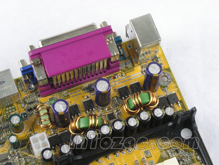 处理器供电部分采用2项回路设计,提供良好的稳定性。这样的供电设计在865时代非常少见,仅在一些高端产品中采用。