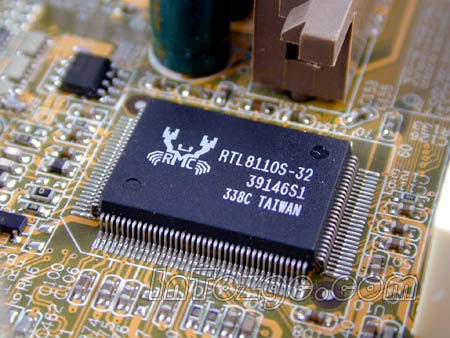 板载了8100的10/100M自适应以太网接口,ALC855 6声道的音频控制芯片。