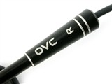 V8+还是采用OVC标志性的锤状造型,整体上由几个规则的几何体组成,耳塞正面覆盖着银白色的鱼网状罩子,罩子边缘以黑色橡胶圈包裹。单元后部半圆球形的外壳通过一个圆柱体和耳塞柄连接。耳塞柄从后往前呈一个渐细的柱状,上面还有几个亮银色金属圈起装饰作用,在耳塞柄上还蚀刻着有OVC三个字母和L、R标记。在耳塞本体后部有一个圆形金属装饰,表面处理的非常光亮,灯光下可以反射出耀眼的光泽——此处有效提升了造型的时尚感,堪称一个亮点。