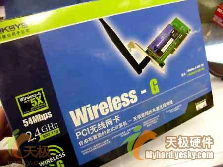 产品推介:Linksys的台式机无线网卡在市面上比较少见,WMP54G(在前文有详细介绍)则是其中的一款精品,这产品在去年曾一度涨价到560多元,而最近由于赶上了降价浪潮,售价降至410元,虽然还是比较昂贵,但是对于那些已经购置了Linksys54M无线路由器,而又想让台式机无线上网的用户来说,多花点钱是值得的,毕竟使用同厂商的产品兼容性更好,才能把整个无线网络的发挥到最佳效果,而且Linksys的产品质量还是非常令人放心的。