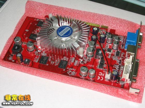 这款显卡采用了性价比很高的HY mBGA封装2.8ns GDDR2显存颗粒,正反两面共八颗,组成了256M 128bit的大容量显存规格,而显卡的核心/显存频率为450/700MHz,比公版的设定要高出不少。