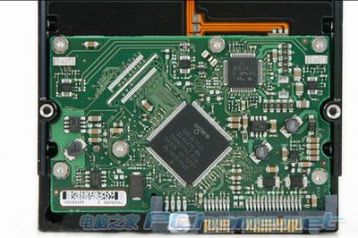 Agere公司的产品,由于采用了SoC设计,在主控制芯片中就已经集成了16MB的SDRAM(会根据不同的型号限定不同的容量),不再有外接的SDRAM缓冲区内存芯片,因此Barracude 7200.9的电路板非常简洁,只有主控制芯片和马达控制芯片。希捷表示,两个供货商(Agere和ST)的主控制芯片产品完全一样,都是希捷设计委托他们生产。