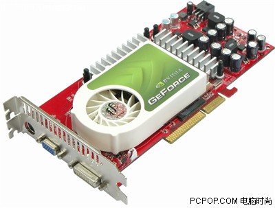 采用1.4ns GDDR3高速显存,8颗组成512MB/256bit规格,也是现今AGP显卡里面最顶级的配置,默认频率为425/1000MHz,采用高品质散热片为显存散热;相对于1.4ns标准的1.4GHz来说,预留不少提升空间。