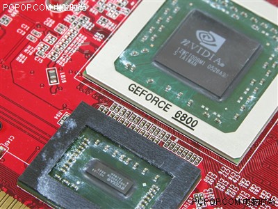 拆开散热片后,这款显卡把桥接芯片设计在6800GS核心下方,采用一体式散热器,有效解决令人烦恼的桥接芯片散热问题!!6800GS拥有12条渲染管线,最可贵的是还拥有高达512MB的显存,把AGP显卡的性能提升到新高度。
