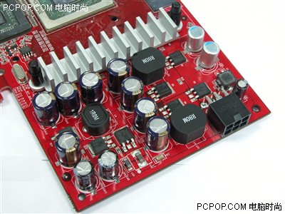 核心和显存供电都被安置在PCB的最右端,由红宝石电容和屏蔽电感组成,优化的供电电路有利于运行频率的再提升;同时供电部分远离输出接口,尽量低减少对视频输出的干扰!