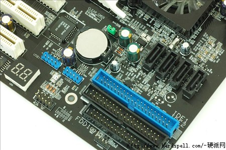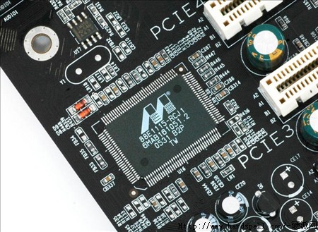 主板提供的扩充插槽十分的丰富,最重要的当然是两个PCI-E 16X显卡插槽啦,用户可以使用两个相同的显卡来通过设计就能享受到SLI双显卡的极至快感;另外还提供了两个PCI-E 1X插槽和三个PCI插槽,扩充绝对可以满足一般用户各个方面的使用要求了。