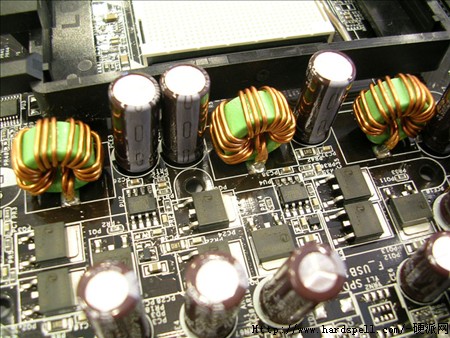 华硕A8V-E SE主板的供电模块采用三相供电回路设计,选用大量高品质KZG滤波电容。