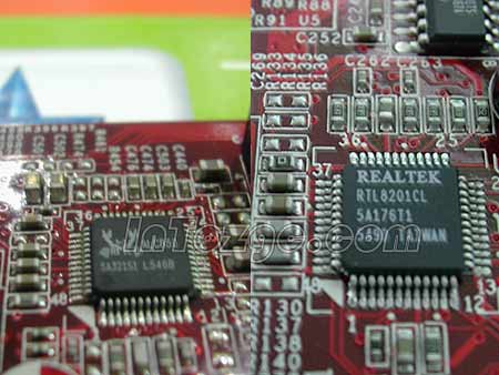 集成ALC655声卡芯片,支持5.1声道输出,板载RTL8201CL芯片支持10/100M自适应以太网接入。
