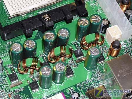 处理器供电部分采用三相回路设计,并且全部采用三洋电容,令超频更加得心应手。