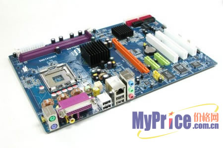 这款主板提供了2条内存插槽,最大能够支持2GB DDR2 533规格内存,并带有PCI-Express ×16插槽和三个PCI接口,扩展性满足一般用户需要。南桥芯片为IXP450,提供了两个PATA以及两个SATA,并能组建SATA RAID 0,1高速磁盘阵列。主板集成了ALC655音频芯片和 RTL8100C网路芯片,可提供5.1声道音频输出和百兆网卡,在I/O方面,特别提供一个SPDIF音频输出接口,影音功能十分完备。